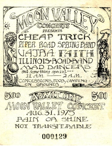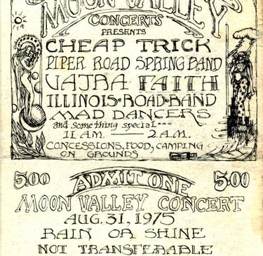 The 1970's was a great time to be in a rock band in Wisconsin. Lots of clubs had live music every week. A couple of my bands, Vajra & PUSH, did original songs and we recorded them in a couple studios and lots of clubs. Presented here in two CDs in all their sweat filled analog glory. At the Moon Valley outdoor concert at the Jungle Bar, Hub City, WI, Vajra opened for Cheap Trick on 8/31/1975. Vajra recorded an album at Jamie Goldsmith's studio that was never released but some of the songs appear on these CD's